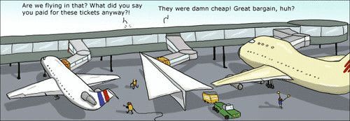 Mai zilele trecute discutam cu colegele socratiste despre avantajele şi dezavantajele unui zbor cu avionul la "Low Cost". E adevărat că e mai uşor să scoţi 60 de euro pentru un dus-întors Spania, însă marele dezavantaj e că primul zbor poate fi ultimul. Pînă rumegaţi posibilitatea, vă las în compania poz(n)ei de mai jos.