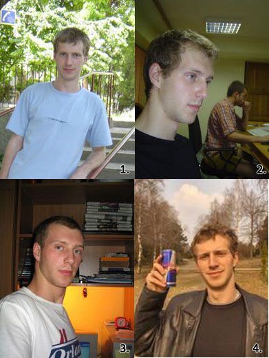 M-am uitat astăzi la fotografiile din profilul meu de pe Yahoo. Nu au fost alese cine ştie cum, ci au fost adăugate pe măsură ce le făceam. Lucru ciudat, pentru că, rememorînd circumstanţele în care au fost făcute, mi-am dat seama că intervalul dintre ele e de aproape un an. Aşadar, iată cum arătam eu de-a lungul facultăţii... Să vă spun şi eu povestea fiecăreia.